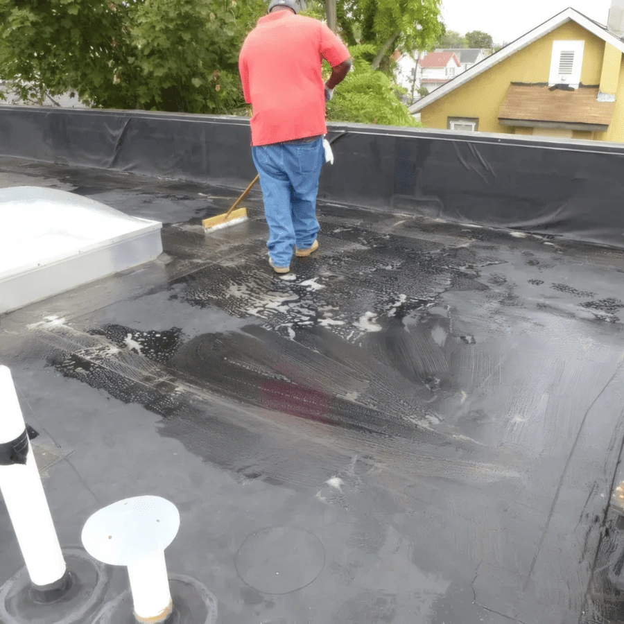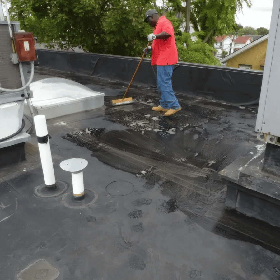 Che si tratti di una nuova copertura o di un sistema per tetti preesistente, questo processo è molto importante, poiché i prodotti liquidi devono aderire direttamente sulla superficie pulita del substrato. I detriti, il grasso, la polvere, o qualsiasi altro materiale che inibisce il legame tra la superficie del tetto e il materiale fluido appena applicato indeboliscono o ostruiscono l’adesione dello stesso. Di conseguenza, un substrato non adeguatamente pulito influirà negativamente sulle prestazioni della membrana applicata, portando al suo fallimento precoce. Il lavaggio a pressione è il metodo più comune per pulire un tetto esistente per la preparazione della superficie. La maggior parte dei produttori specifica a tal fine il proprio detersivo, solitamente biodegradabile o un equivalente generico ampiamente accettato.