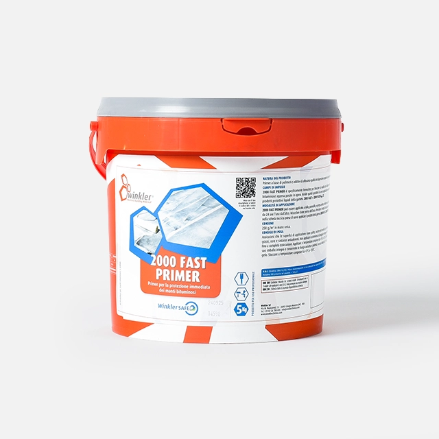 2000 FAST PRIMER, a base di polimeri e additivi di altissima qualità in dispersione acquosa e speciali cariche, formulato per bloccare la risalita di oli dalle membrane bituminose appena posate in opera.
