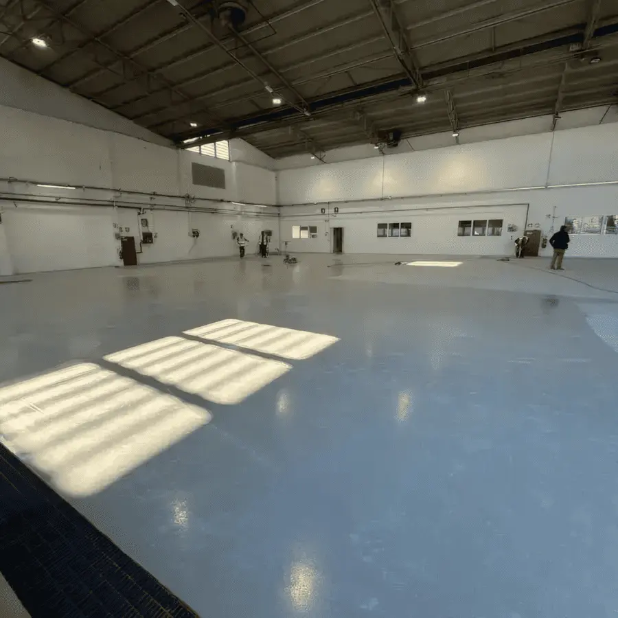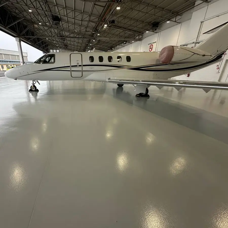 L’intervento ha richiesto la ristrutturazione della pavimentazione per garantire durabilità, distribuzione uniforme dei carichi e resistenza a contaminanti specifici del settore aeronautico.